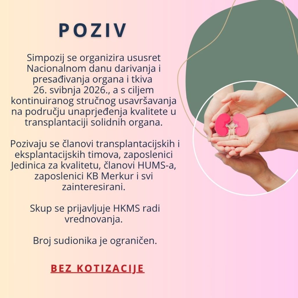 26. svibnja 2026., a s ciljem kontinuiranog stručnog usavršavanja na području unaprjeđenja kvalitete u transplantaciji solidnih organa.